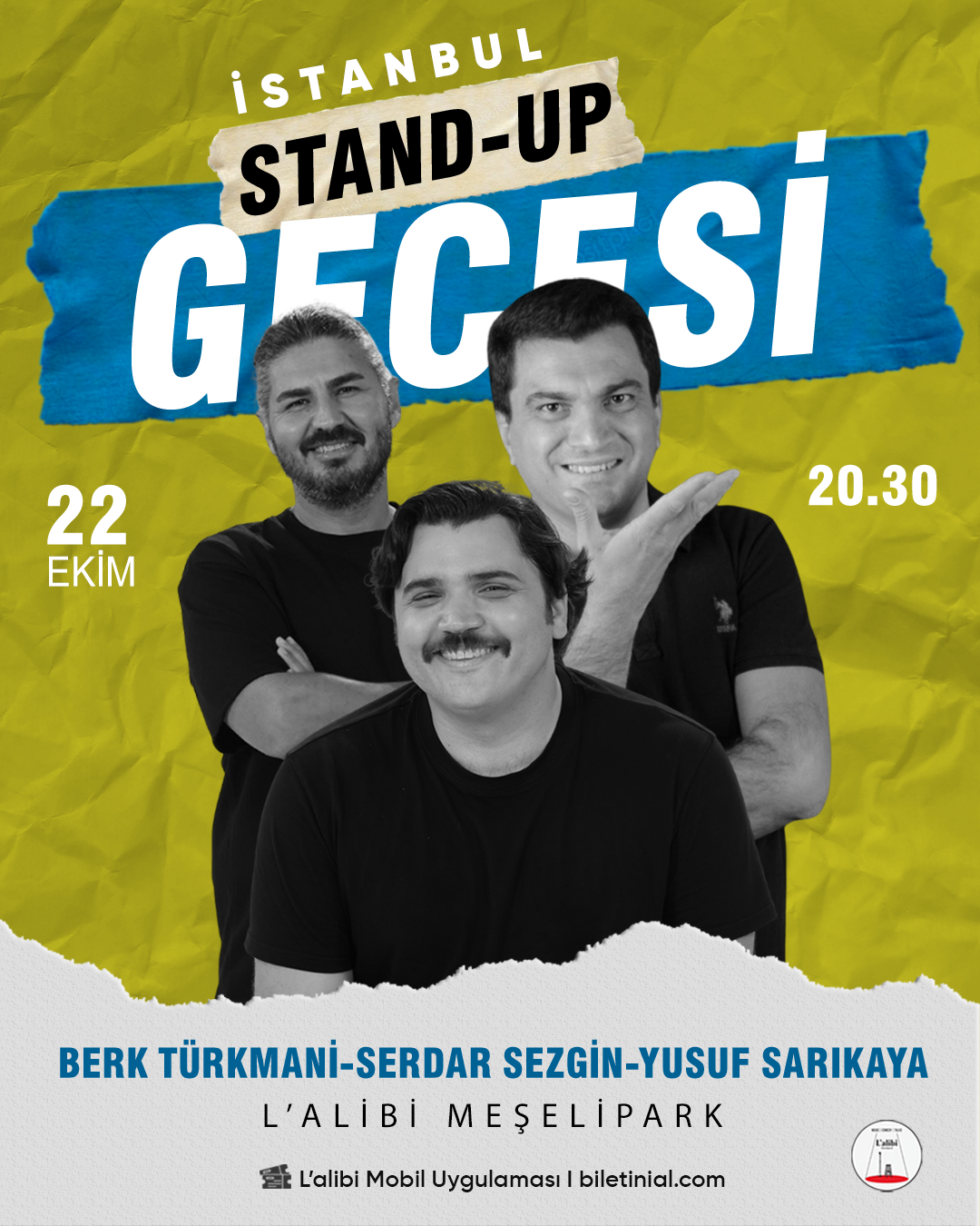 L'alibi etkinliklerini mobil uygulamamızdan takip edin ve biletlerinizi kolayca alın.